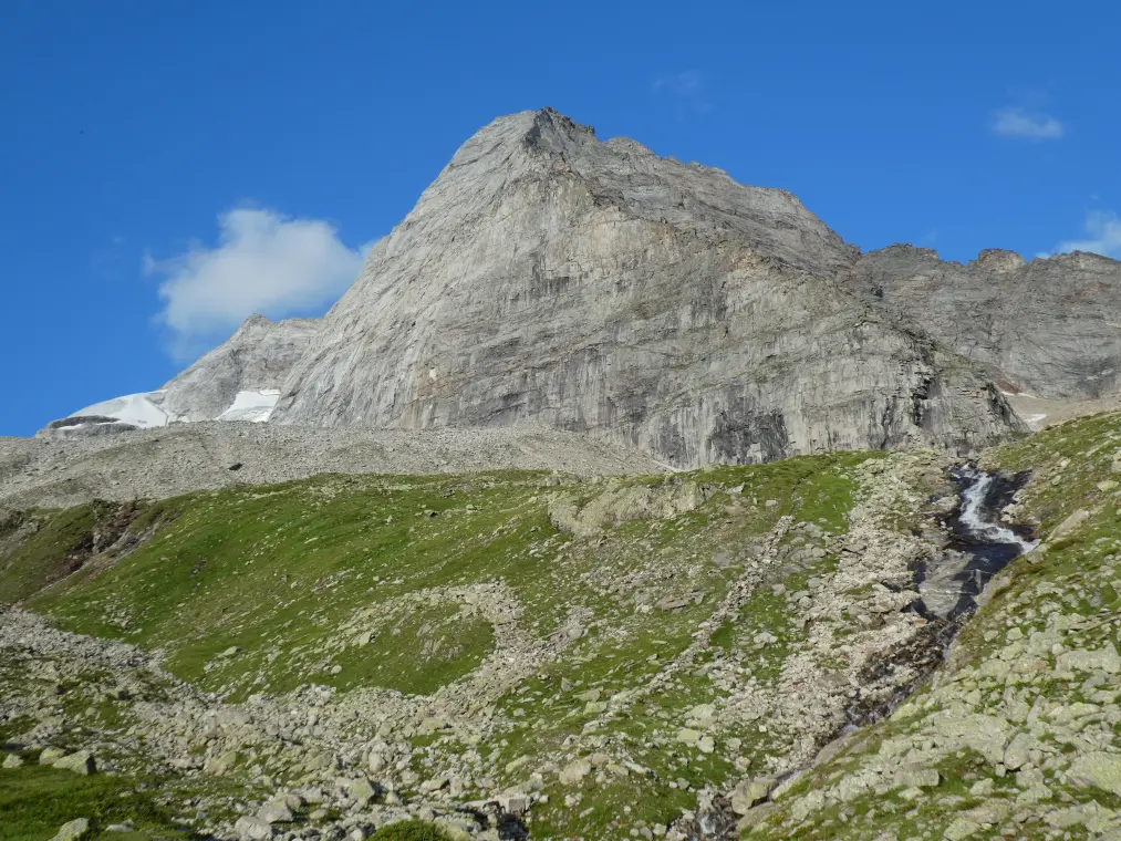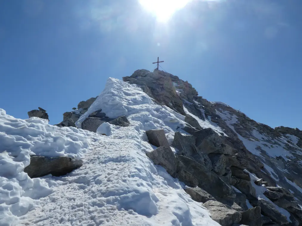 Von der Wildlahnerscharte (3.220 m) geht es steil den Eisbuggl hinauf, ehe wir nach links zu den Felsen des Nordgrats queren. Die Kletterei am Nordgrat ist anhaltend gleichmäßig schwer, die Schlüsselstelle bildet ein kurzer Steilaufschwung.