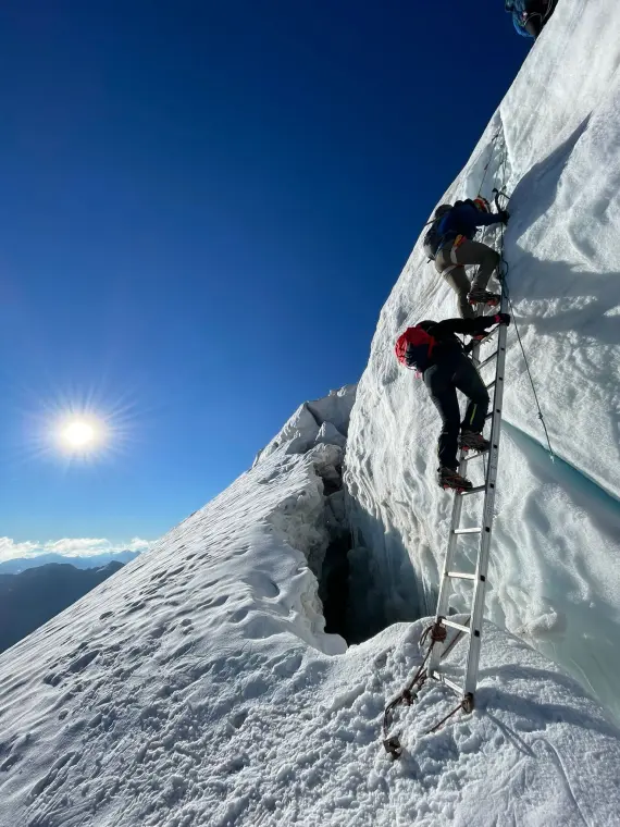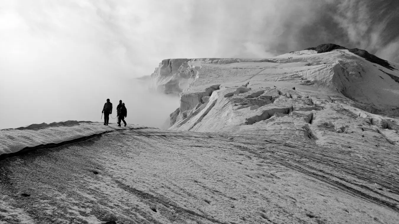 Anschließend gehen wir mit Steigeisen auf Schnee und Eis abwechslungsreich über Gletscherspalten und Steilaufschwünge zum flacheren Oberen Ortlerferner, wo der Gipfel bereits in greifbarer Nähe rückt. Nach etwa 3–4 Stunden Aufstieg stehen wir am höchsten Punkt Südtirols.